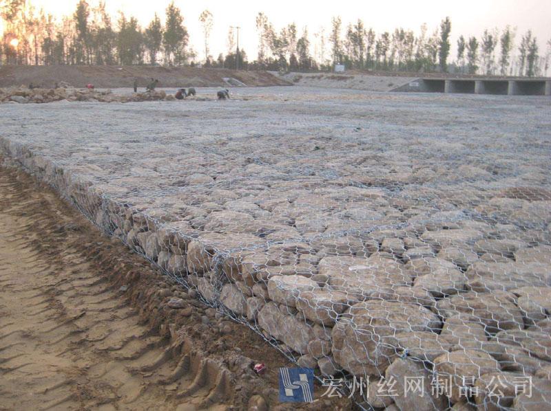 雷諾護墊是厚度在0.15-0.5m(含0.5m)的網箱結構。主要用作河道、岸坡、路基邊坡護坡結構。既可防止河岸遭水流、風浪侵襲而破壞,又實現了水體與坡下土體間的自然對流交換功能,達到生態平衡。坡上植綠可增添景觀、綠化效果。