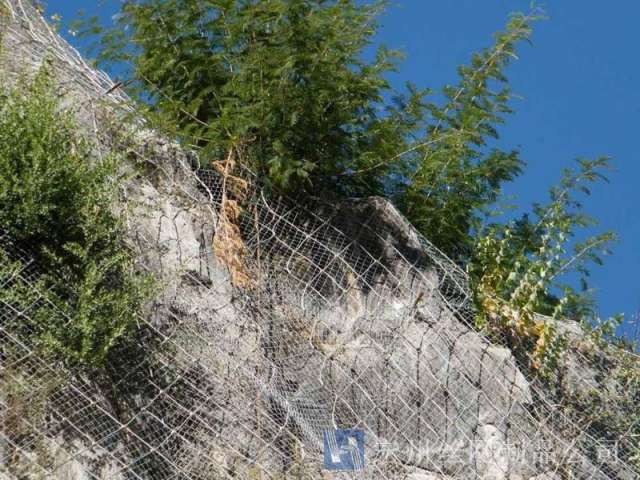 主動(dòng)防護(hù)系統(tǒng)是以鋼絲繩網(wǎng)為主的各類柔性網(wǎng)覆蓋包裹在所需防護(hù)斜坡或巖石上,以限制坡面巖石土體的風(fēng)化剝落或破壞以及為巖崩塌(加固作用),或?qū)⒙涫刂朴谝欢ǚ秶鷥?nèi)運(yùn)動(dòng)(圍護(hù)作用)。是柔性防護(hù)網(wǎng)的一種。